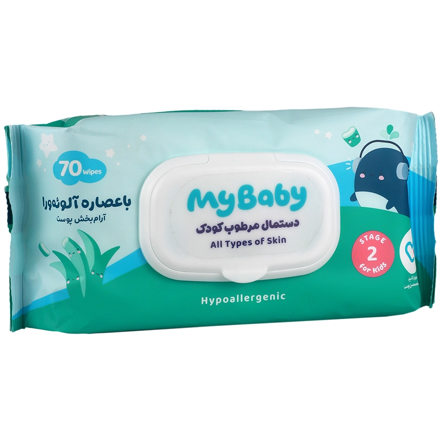 دستمال مرطوب کودک مای بیبی حاوی آلوئه ورا 70 عددی