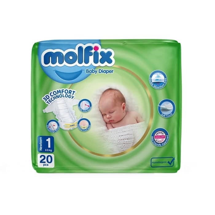 پوشک مولفیکس سایز ۱ بسته 20 عددی